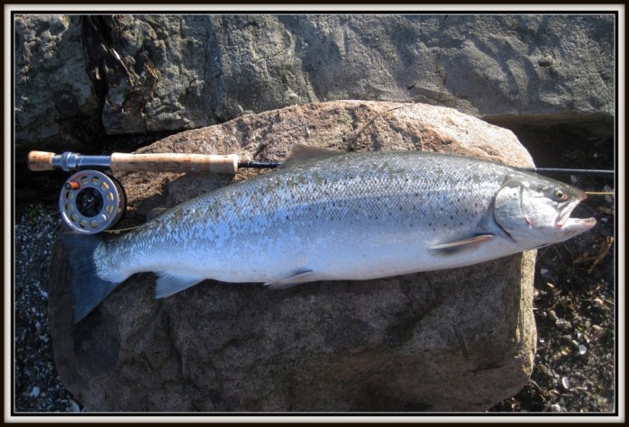 Da jeg svingede ind på p-pladsen søndag morgen, så jeg til gengæld nok den flotteste fluefangende blank fisk jeg har set i rigtig mange år fra nordkysten.