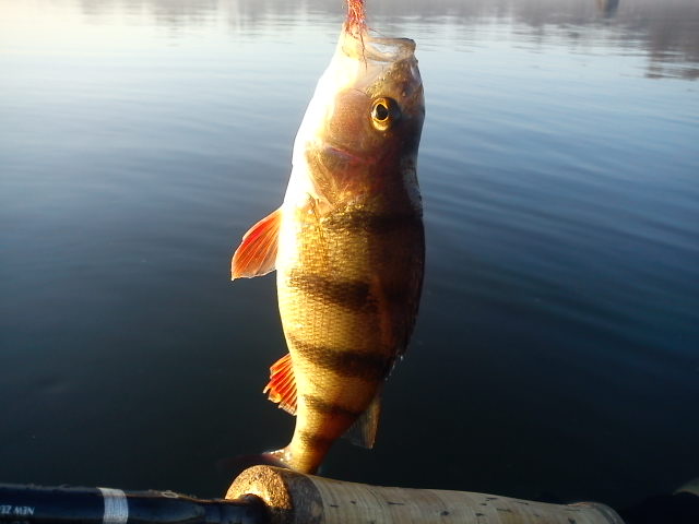 Ydermere lidt pudsigt, så vidt jeg kan se, er aborren fangen på en CD-Rod fra New Zealand, hvilket de to krydsede klinger også er 😉