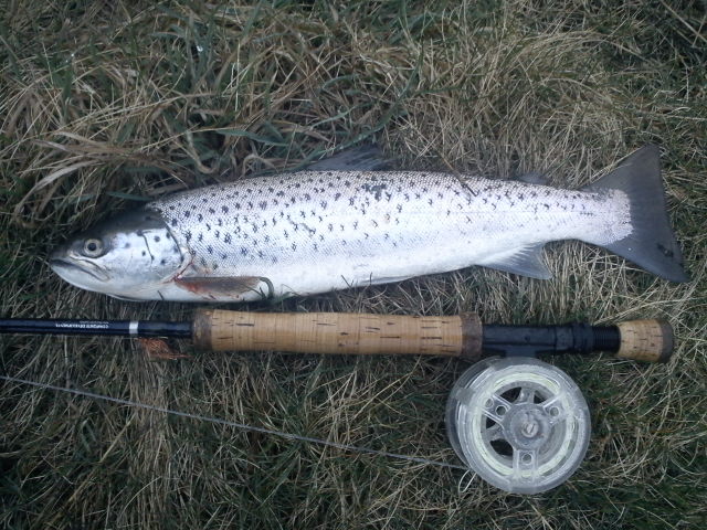 Møg-vejret tog til og det var næste umuligt at få fluen ud på “hot-spottet” men det blev dog til en havbasse-mere midt i en hagl-byge. Et par fiske kammerater havde også trodset vejret og var på pladsen fra morgenstunden. De fik også et par fisk i det hårde vejr.