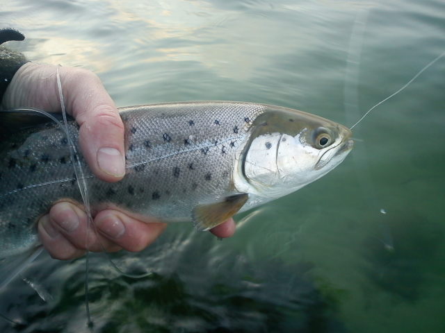 Vandstanden var helt perfekt da vandet dækkede alle de små-rev med blæretang. Vi angreb ydersiden af sten-øen med “kobberbassen” og efter 30 minutter var der kontakt med en af de “rigtige” og efter en super fight med mange spring kunne jeg håndlande en fin fjordørrred på 45 cm. Ørreden blev genudsat så den kan nappe “kobber” i efteråret:-)