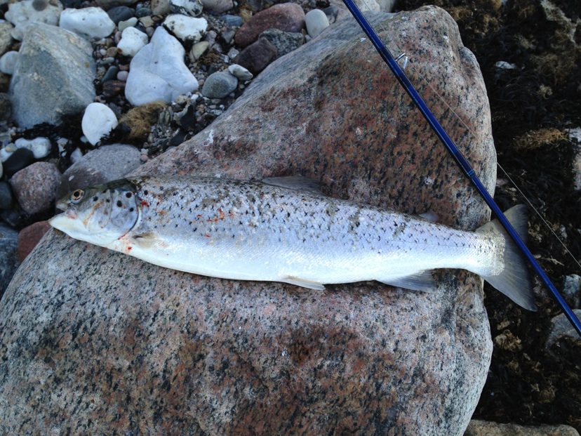 Min fiskekammerat havde svært ved at komme ud af sengen og var derfor blevet noget forsinket med det var ikke nogen hindring for at nappe en fin havørred:-)