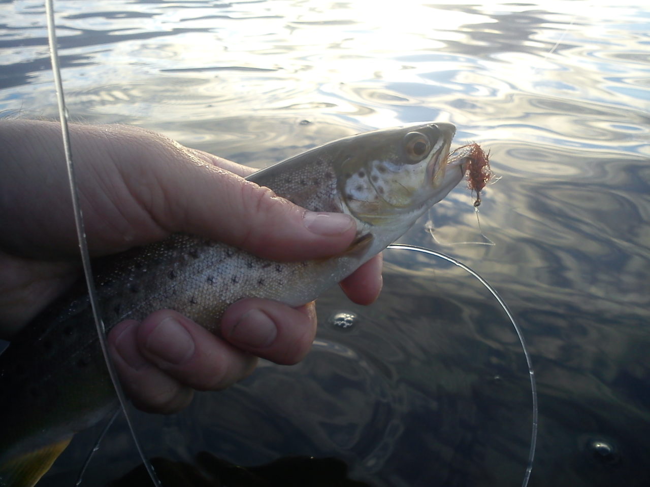 På “enden-stationen” ved revet var det gutterne der mærkende liv. En mindre ørred drillede begge med at følge/nappe fluen uden at blive hængende. Så ved 9 tiden var der meget sølvtøj i fiske-galjen men en flot karl-johan svamp blev det dog til på tilbageturen for mig:-)