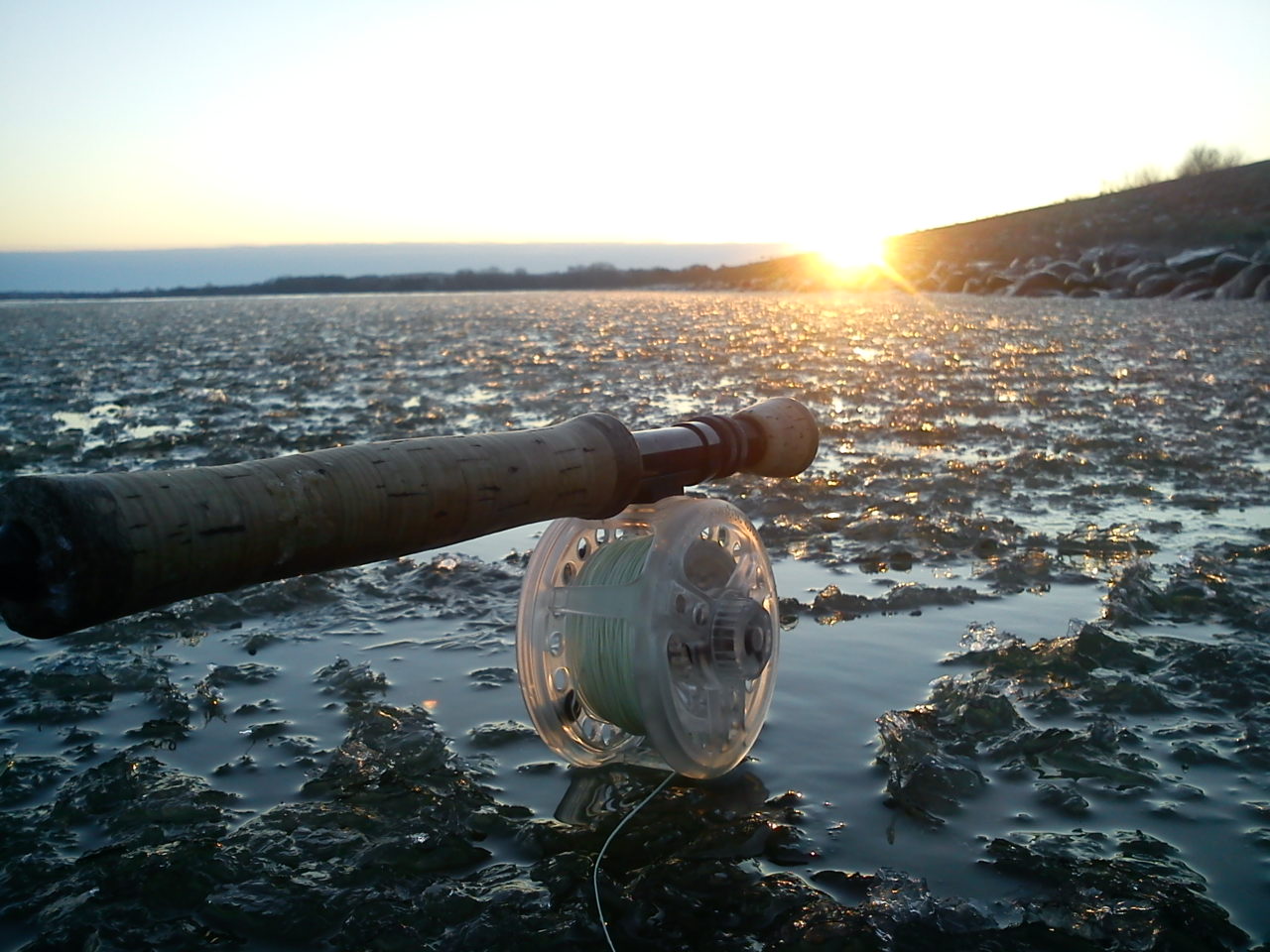 Frosten gjorde det desværre umuligt at fiske i mere end 30 minutter da der kom is i øjerne så det ikke var muligt at skyde linen ud. Trods kulden var der fisk der viste sig i overfladen så det var lidt ærgeligt at øjerne var blokeret med is:-)