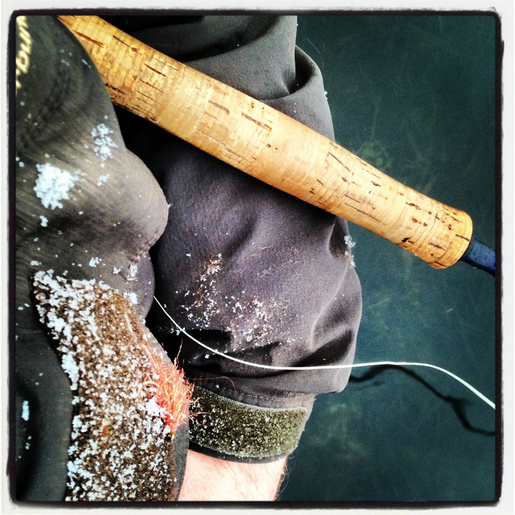 Desværre var det denne morgen blevet snevejr sammensat med en kold nordøst vind. Det var ikke den bedste coctail men som altid med havørredfiskeri er det bare om at give det chance.