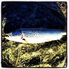 Jeg måtte lige til spotte endnu en gang. Var der lidt i 6 imorges, men i dag kunne jeg ikke have det for mig selv 9 andre fisker havde også fundet vejen. Efter en times tid havde jeg taget 4 fisk. Den største var en nedgænger på omkring 58cm og en på flot fisk på 54cm