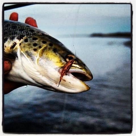 Endnu en morgen på spotte. Jeg havde fisket en halv times tid, da jeg synes jeg så en fisk bryde ovrefladen. Hurtigt ind med kobberbassen og et kast ud mod det jegså, får sekunder hugger en ørred basse omkring målet. ud med fluen igen og det sammen gentager sig. De næste 20 kast får en fisk mere omkring målet, en omkring 50 og en på 55, samt 2 forsigtige nap og en blank fisk på anslået 2 – 2,5 kg og lidt over de 60cm. Den næste times tid skete der ikke meget mere, andet nogle andre fisker dukkede op og der blev taget en enkelt undermåler.
