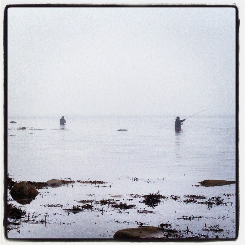 Nogle gange er det ikke nemt finde fiskene. I dag var det en af disse dage hvor forholdene er svære i fjorden. Det var meget diset, vindstille og det var meget lavvande. Denne coctail gør mange gange at man må skifte fiskeplads flere gange hvis der skal stemples havørreder. Det er det som jeg kalder “gearstangsfiskeri”.