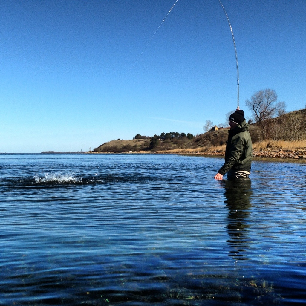 Det gik ikke længe før at de først havørreder viste sig i overfladen på strækningen. Det gav fangster til deltagerne og undertegnet på et andet sted end der hvor vi havde fundet dem dagen før. Sådan er det med havørredfiskeriet man er aldrig sikker at man finder en stime det samme sted dagen efter.