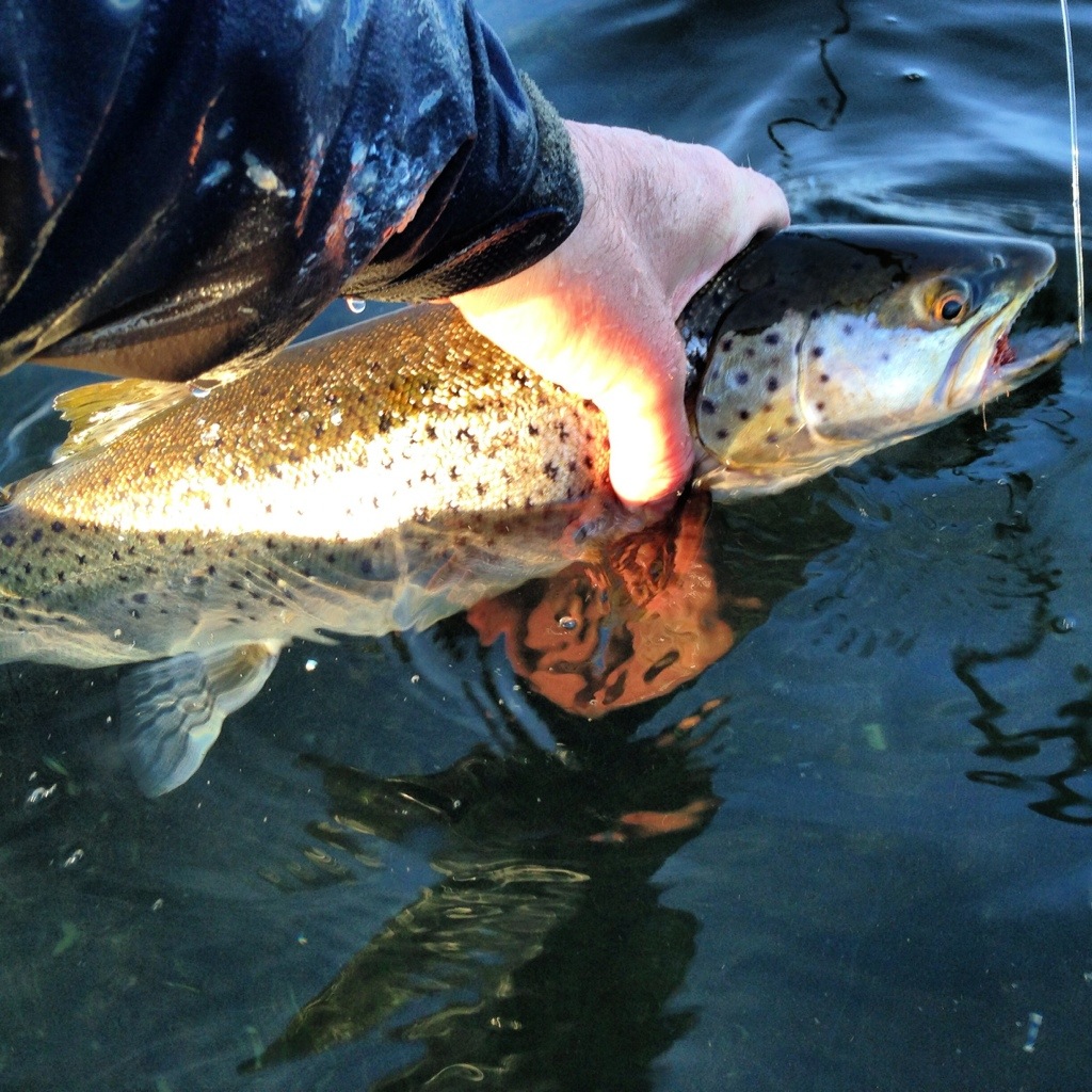 Min fiskekammerat Martin var startet lidt tidligere startet inde i bugten uden at mærke “trutta” nap i fluen.
