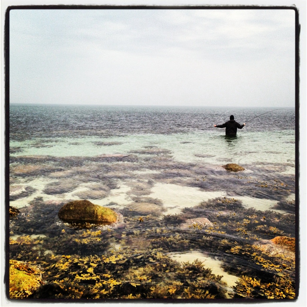 Vi så mange fisk der hoppede eller viste sig i overfladen hele morgen uden at vi kunne overliste dem. Giv gav den gas i tre timer og jeg var den enste der mærkede en havørred som desværre røg efter få sekunder. Hornfisk var der selvfølgelig rigeligt af.