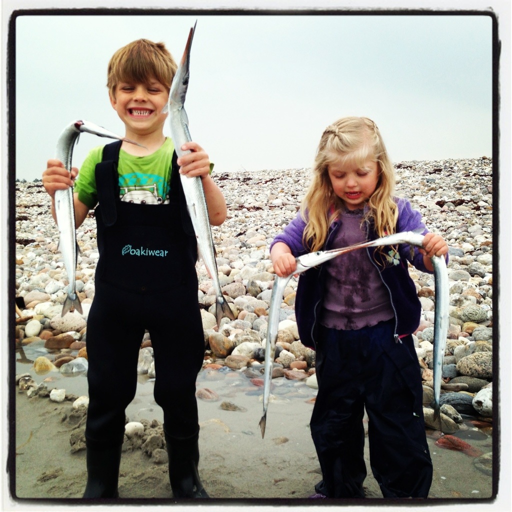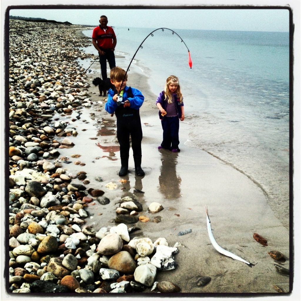 Senere var tilbage på pladsen med ungerne og denne gang var det hornfisk der skulle fanges:-)
