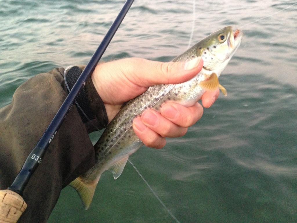 På fiskepladsen mødte jeg en fjordfiske-kammerat som var på jagt efter undslupne regnbueørreder som variation på havørredfiskeriet:-)