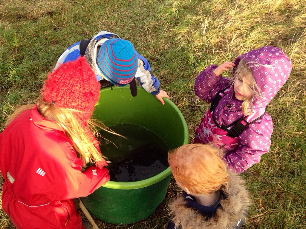 Ungerne hyggede sig med alle de aktiviteter. Baljerne med fisk var mest populære 🙂