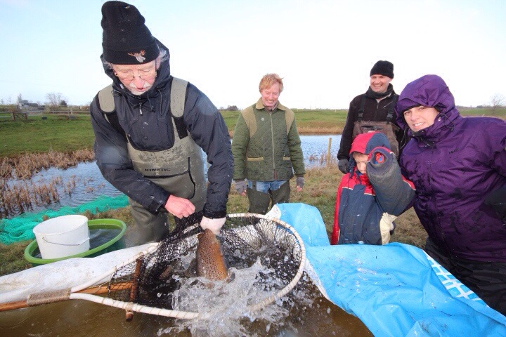 140 havørreder gik i et opbevaringbur som vi gik i gang med at tømme nænsomt.