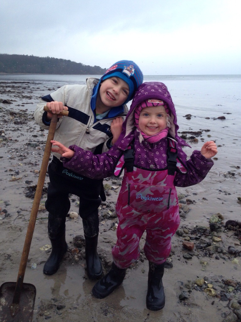 Da vi nåede til fiskepladsen blev ungerne udstyret med fiskestang, skovl og spand.