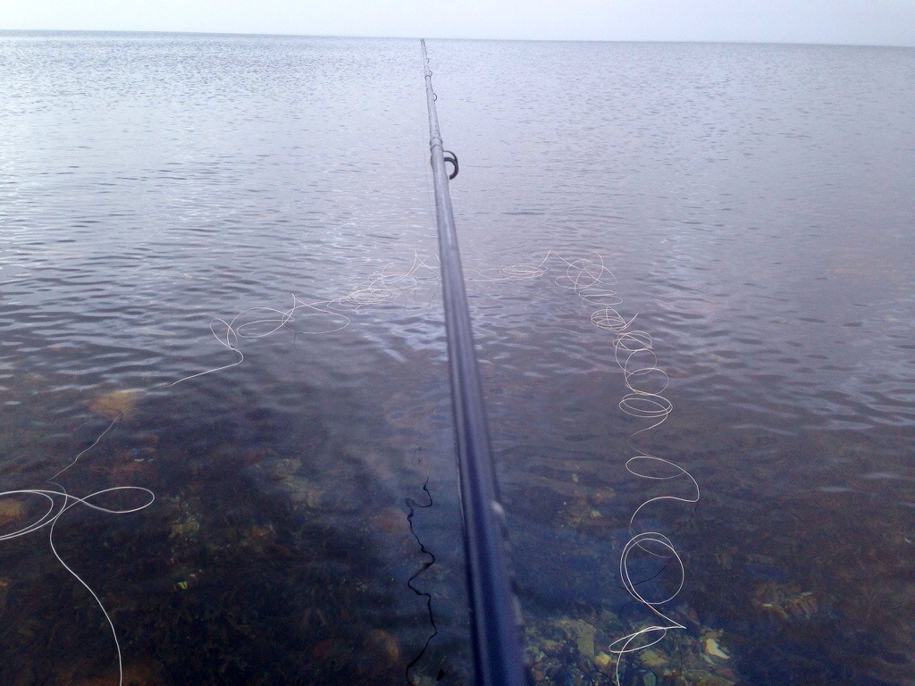 Kobberbassen blev langt ud over det mørke bælter mens jeg står i vandkanten. Det er vigtig affiske det blæretangsområdet grundigt inden man bare vader ud.