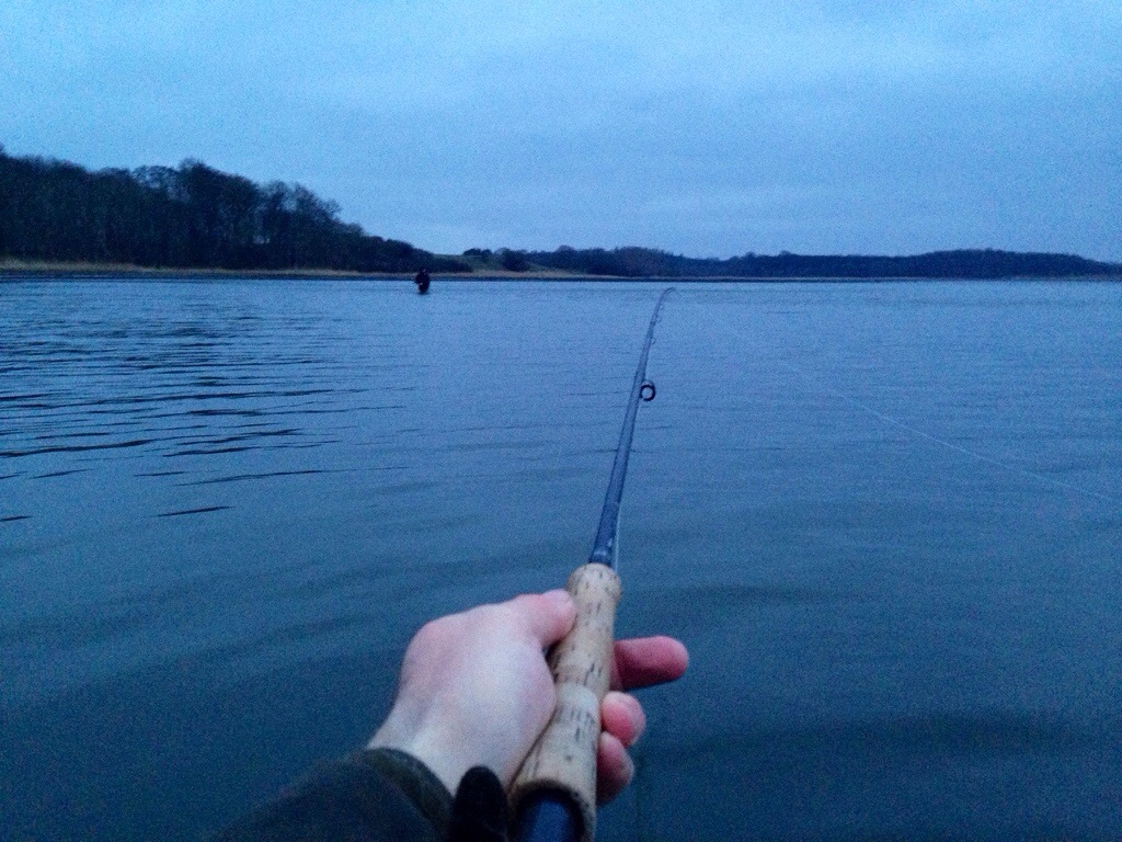 Vi knoklede igennem med et utal af kaste-vinde uden at mærke noget der kunne være havørreder. Vi skiftede derfor kystplads og fortsatte nord-over til en plads med mere dybt vand.