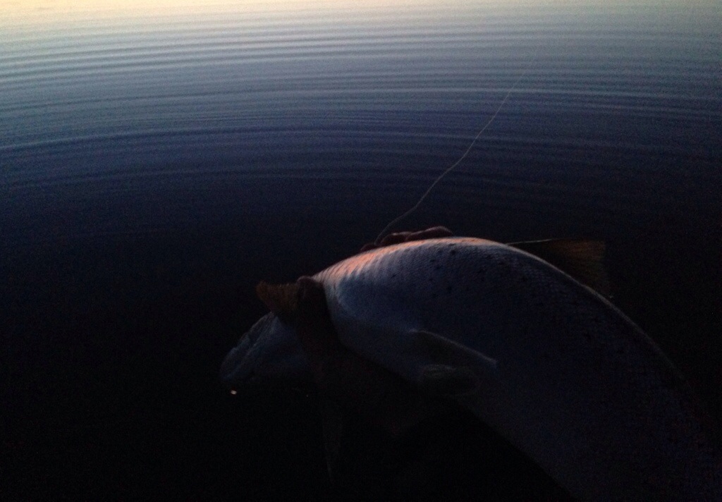 Kobberbasse-fluen fik et par velsignelser på vej ud mod de aktive havørreder. De var dog ikke lige til at overliste. En UMer var dagens første og lidt senere var der et godt i ryk i linen. Jeg gav et ordenligt modhug og så var der dømt flex.