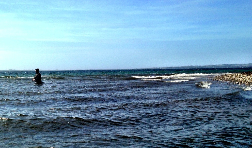 Her var der rigtige fine forhold til havørreder. Uro i overfladen, masser af blæretang og høj vandstand pga. den hårde vestenvind.