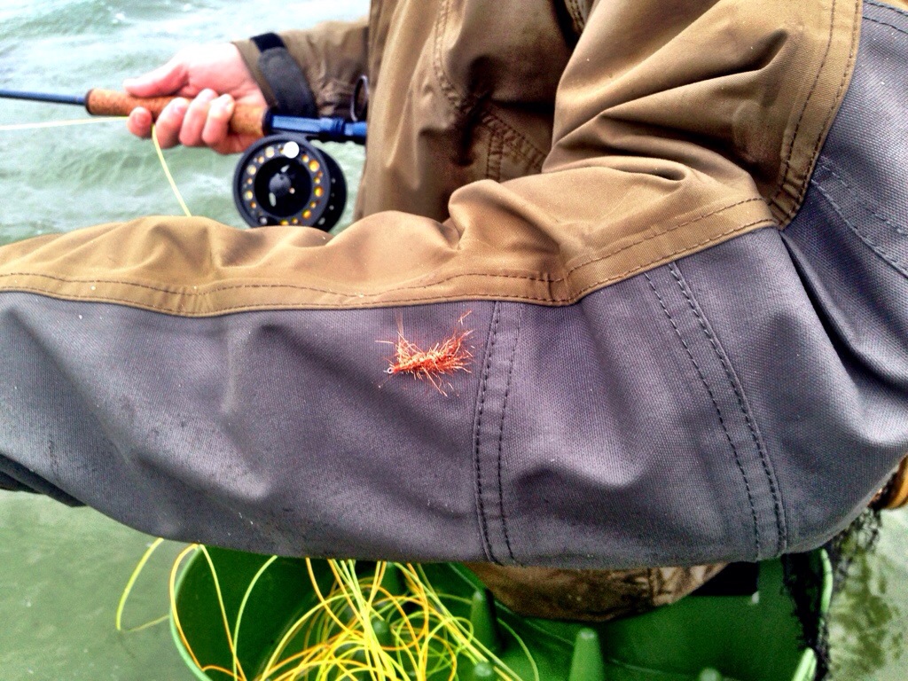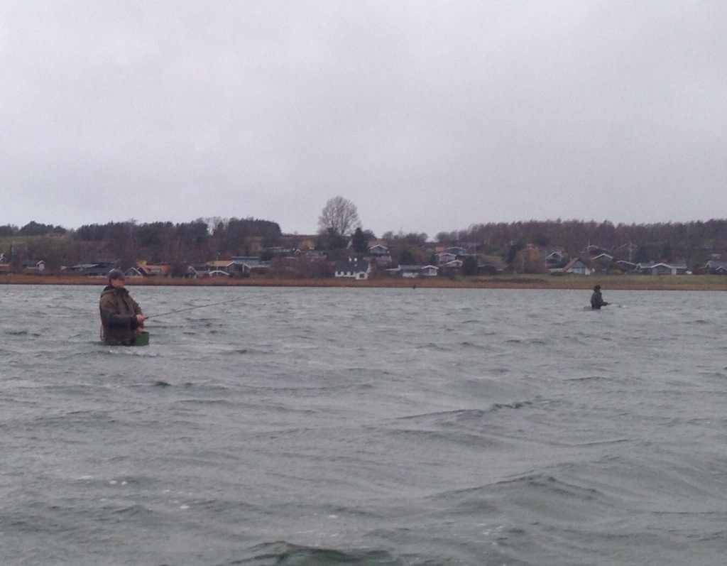 Vi startede i regnvejr og meget kraftig vind der gjorde det lidt svært for os at fiske optimalt med flue og bombarda.