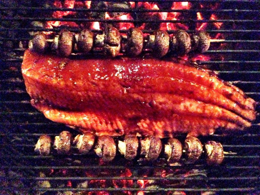 Jeg har fået flere opfordringer til udgive opskriften hvor vi havde grillet en friskfanget havørred-filet som var smurt med en lakrids teriaky.