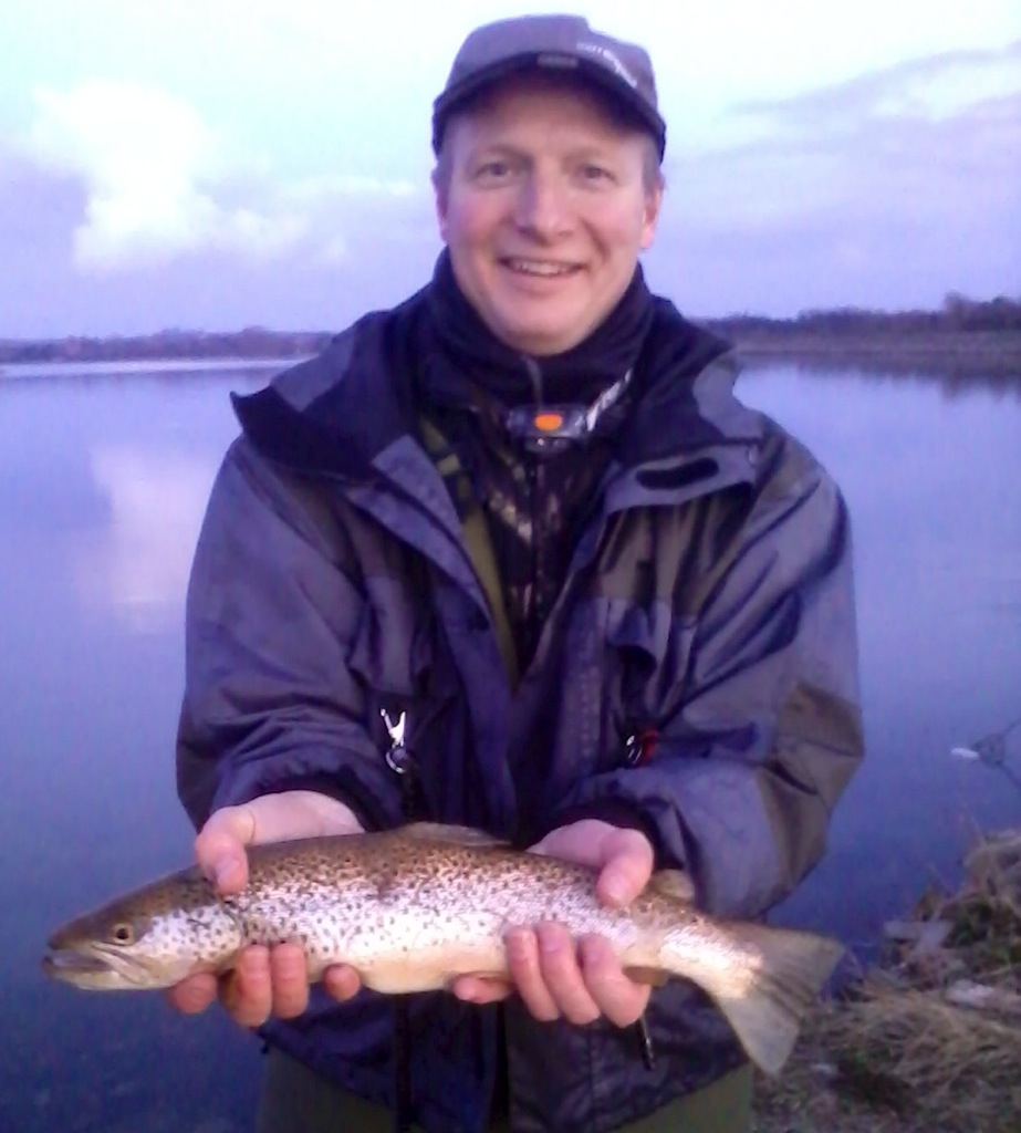 Christian fik hurtigt et godt hug og en fin 1.5 kilos fisk der havde taget kobberbasse-fluen. Havørreden kom i land og der skulle tages et fangstfoto. Det var så her at det gik den anden vej fordi da Christian skulle tage et foto med sin Iphone var den fuld af vand. Samme omgang havde bilnøglerne fået. Uheldigvis var der kommet et siv-hul i vaders lige ved lommen med telefon og bilnøgler.