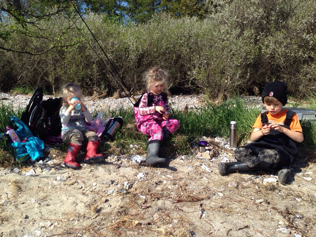 Foruden fiskegrejet og børne-neopren vaders er kakao, kiks, skovl og spand er meget vigtigt på børne-fisketurer.