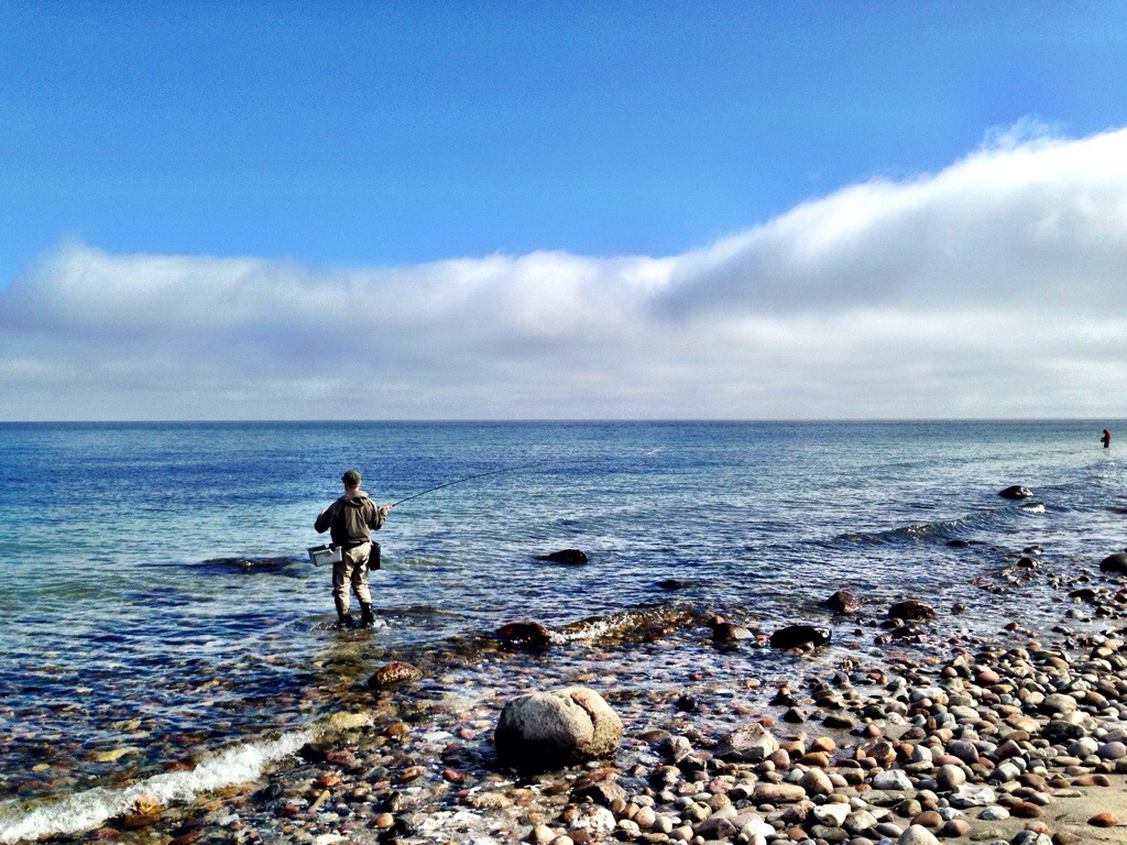 Mellem hornfisk så jeg noget i overfladen der godt kunne være havørred-aktivitet. Afsted med Kobberbassen…