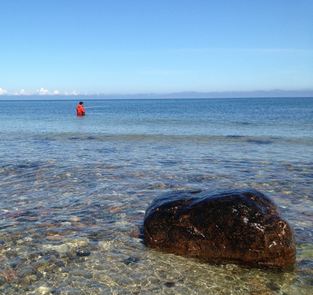 På Engelsk fik jeg introduceret deltagerne til hvordan at man skal tackle havørreden, fiskeriet og angriber fiskepladsen. Det med at hurtig indtagning af fluen kunne gøre en forskel snakkede vi en hel del om 🙂