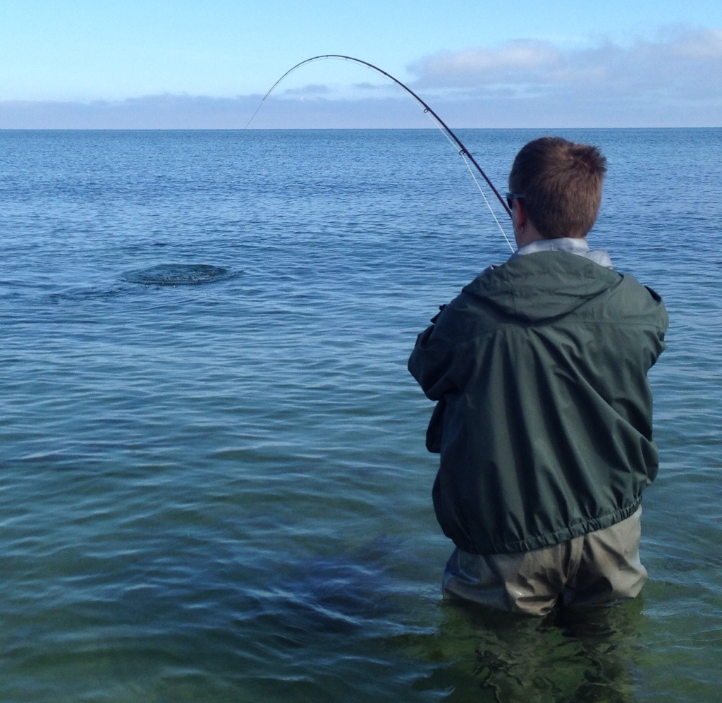 Lige pludselig hørt jeg igen “Seatrout” fra Anders der stod længere henne på strækningen. Så jeg måtte afsted igen med let løb hen stranden.