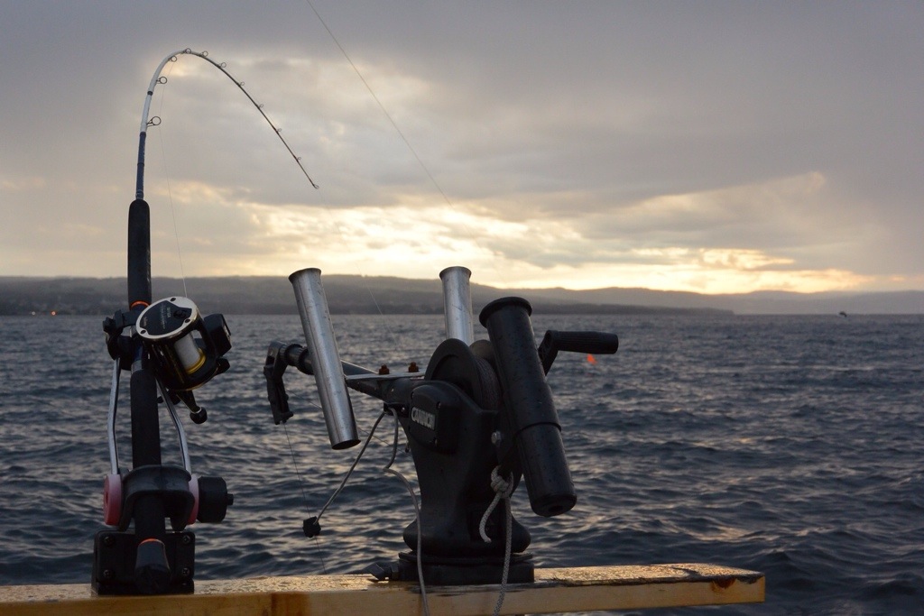 Vi fik hurtigt bid på en af stængerne.vi slog om vi der skulle tage den første fisk.
