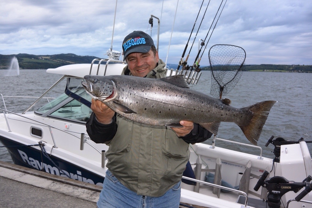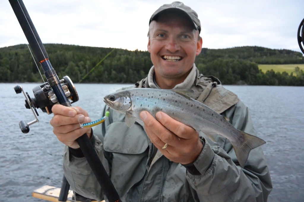 Nat-trolling efter stor-ørreder i Norges største sø Mjøsa er en helt speciel oplevelse. Mjøsa er en meget dyb sø og man bliver noget overrasket over at se ekkoloddet vise 300 meter under båden meget tæt på land. Trolling foregår i det øverste vandlag.
