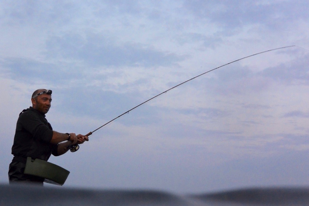 Martin råbte lidt senere at en god fisk havde taget hans kobberbasse-flue.