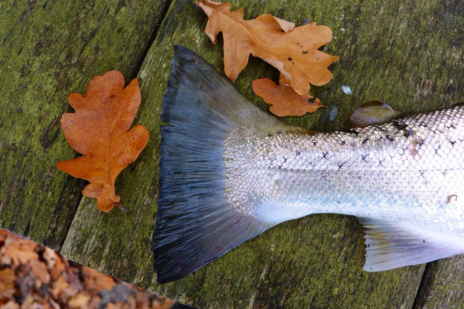 Ved afslutningen måtte guiden lige vise hvad Kobberbassen kunne præsterer da den fik overlistet 6 havørreder med største blankfisk på 54 cm og med løse skæl:-)