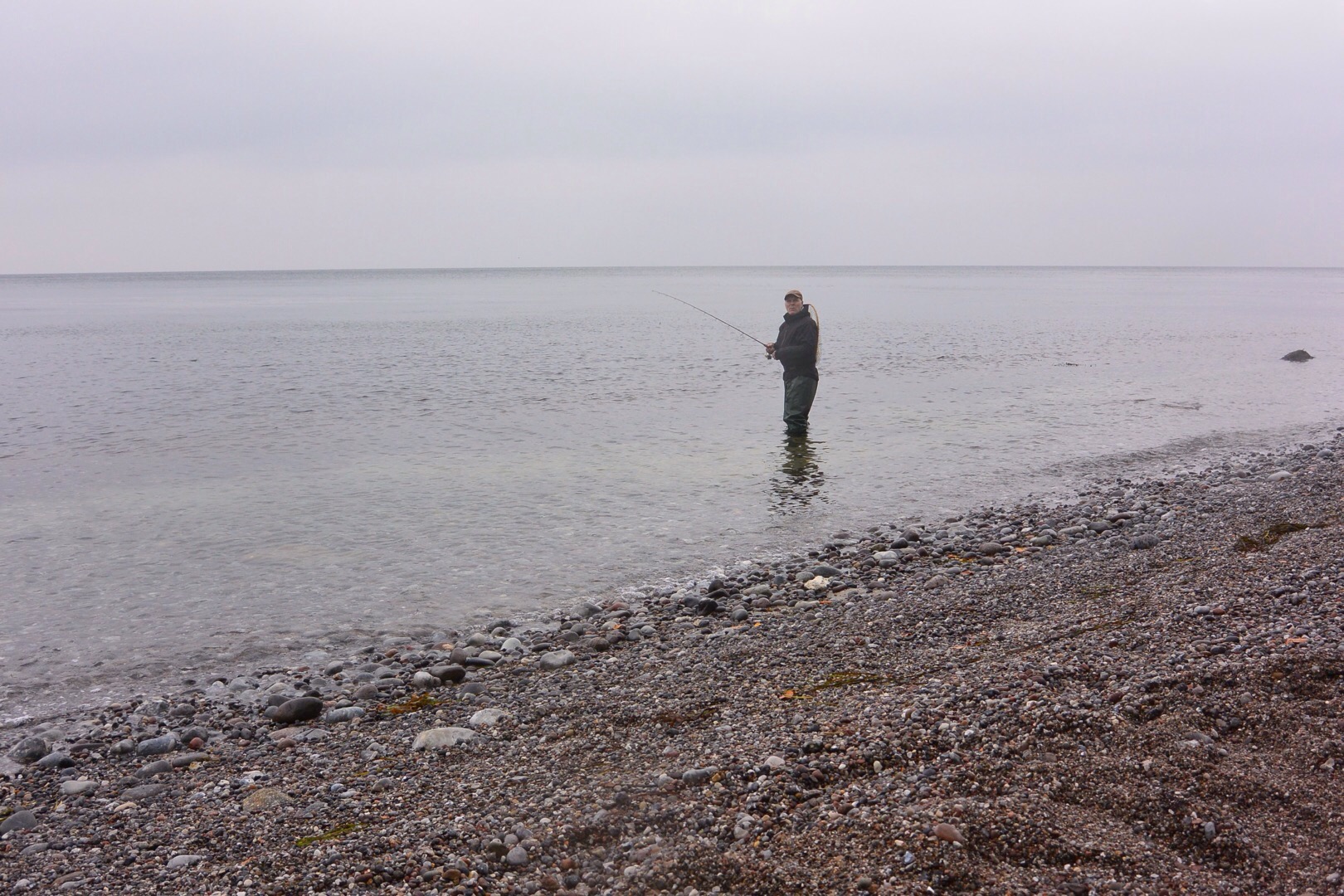 Vi startede på mit landsted med morgenmad og hyggesnak om havørredfiskeriet og kobberbassen.