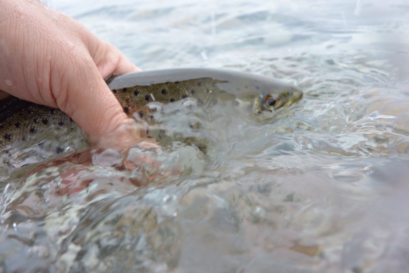 Hugget kom også tæt på land og det var sikkert alle sværme af mysis der trak ørrederne helt ind tæt på vandkanten.
