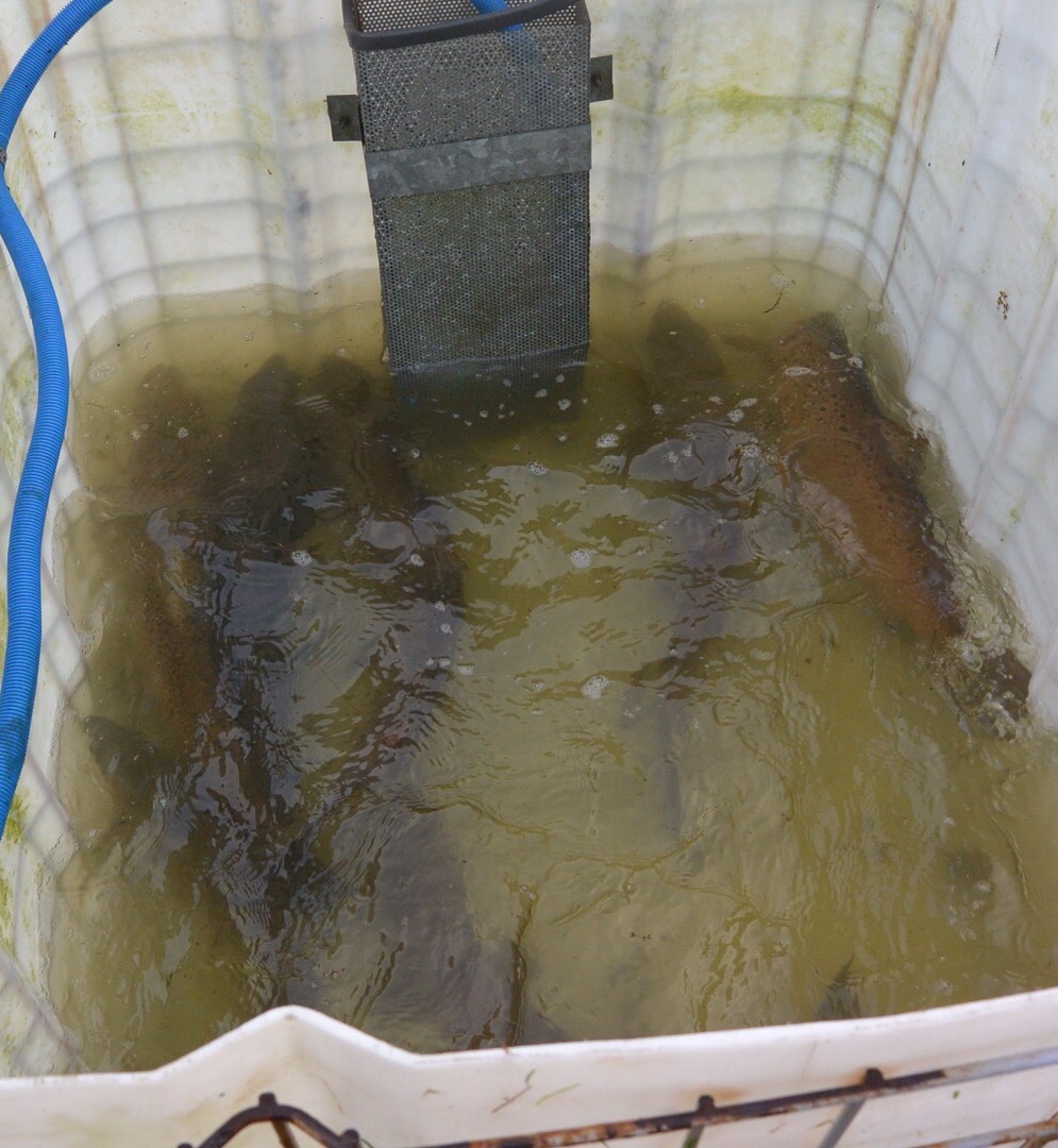 Næsten hvert år opstår der uventet problemer men det ender altid godt alligevel. I år var der smuttet nogle fisk ud af opbevaringsnettet men heldigvis fik vi fat i næste alle de undslupne :-).