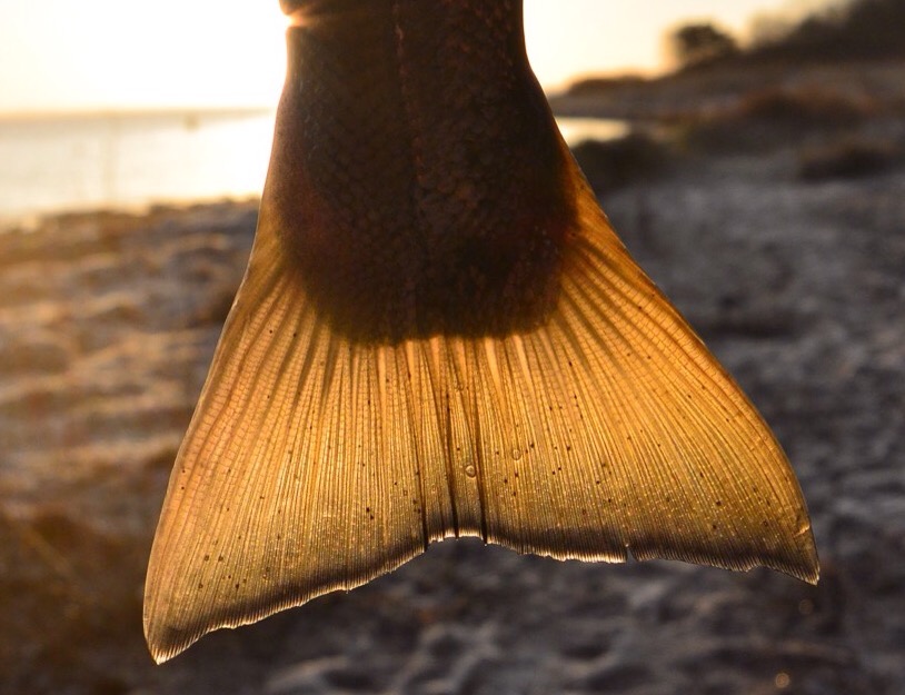 Jeg valgte at affiske et stræk der lå lidt længere mod nord. Det mørke område lå tæt på land og vandoverfladen var næsten stille. Efter et par minutter så jeg lige en ryg-finne og kort efter var min kobberbasse i området. Hugget kom hurtigt og med hurtig indtagning bliver fisken godt kroget selvom det er halt ude i kastet.