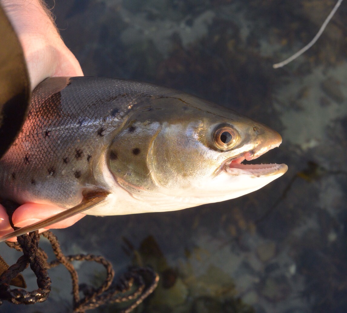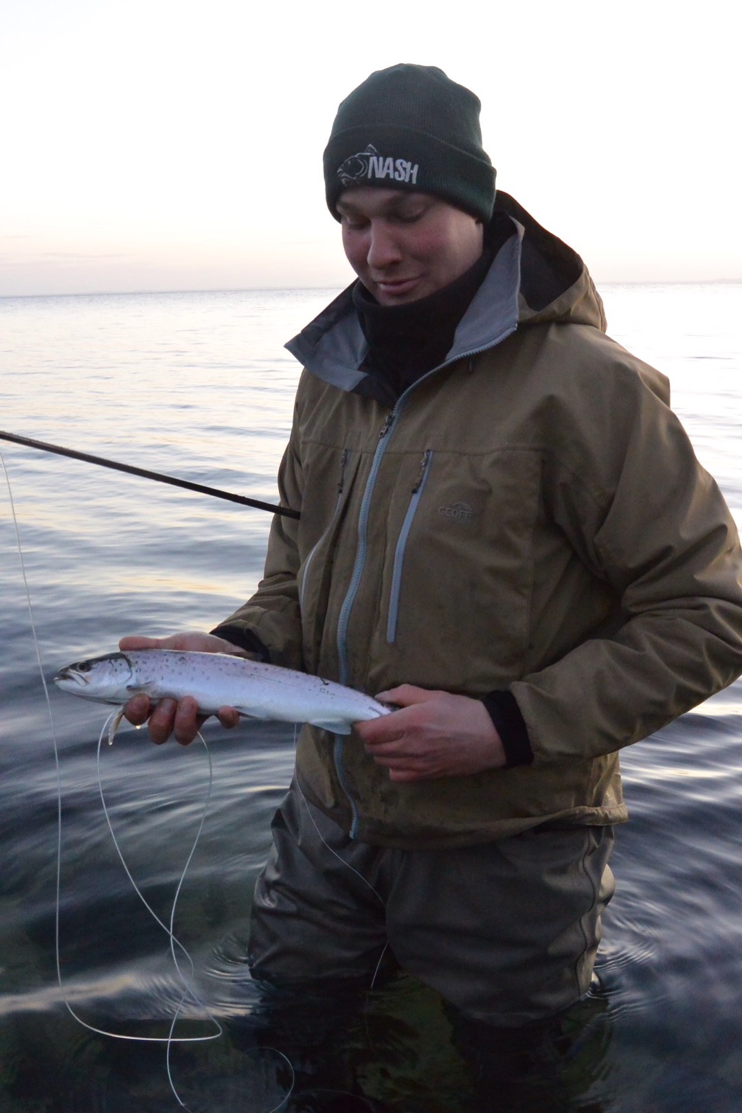 Dagens sidste havørred var en rigtig trofæ fisk med en masse udløb og fuldstændig blank.