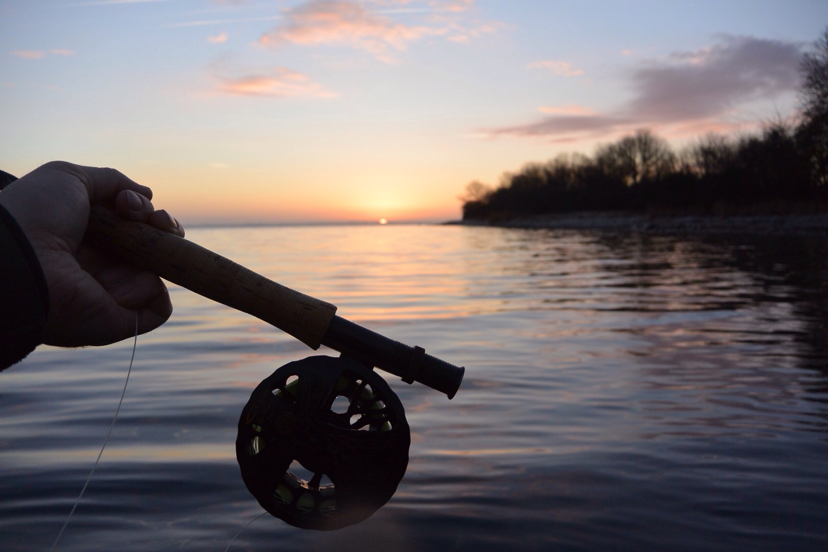 Min fiskekammerat Claus (fishing zealand guide) og jeg var klar til morgenfiskeri i den ydre del af Isefjorden. En utrolig smuk solopgang og frostvejr mødte os på fiskepladsen.