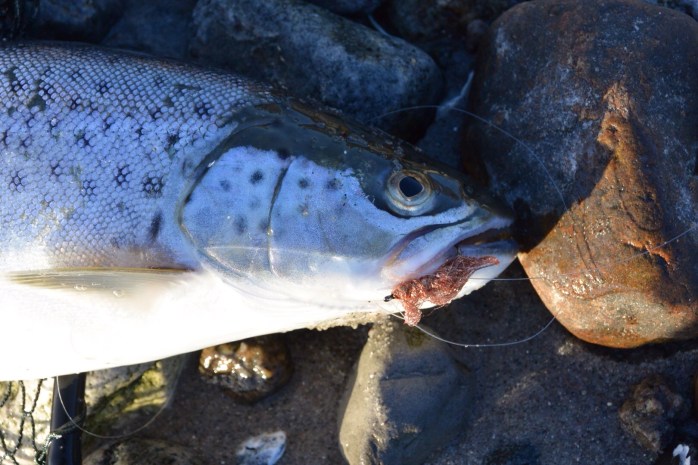 Dagens overspringe (havørred) blev fanget helt tæt på land og ved et fejlkast.