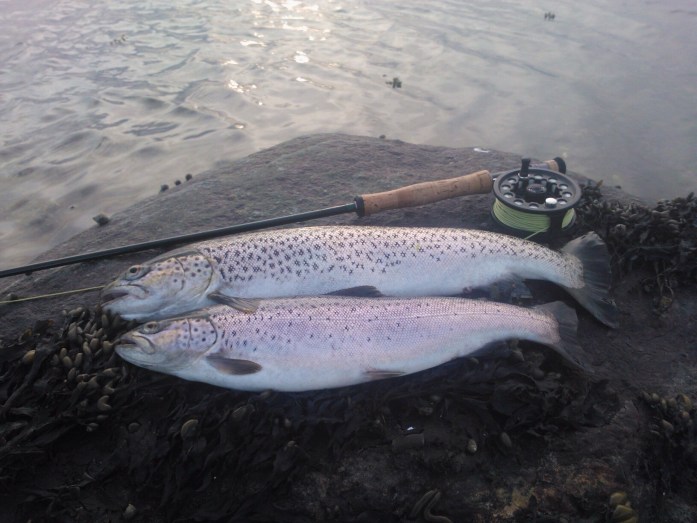 Jeg fik torsdag denne fine fangstrapport fra Henrik Hyldgaard Schmidt der havde lagt et besøg på en kystplads i den sydlige del af Isefjorden. Stort tillykke med flotte fede havørreder.