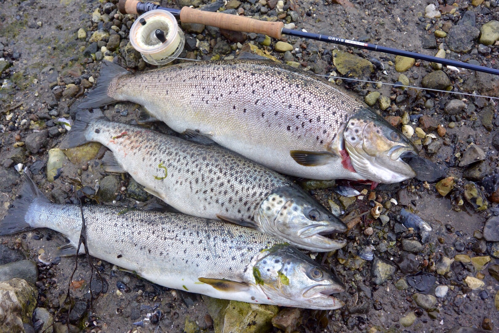 En flot fulfed-havørred over målet havde taget kobberbasse-fluen tæt på land. Så gik det ellers løs med fangsterne og jeg vi samlet flok så det affiskede strækket systematisk.