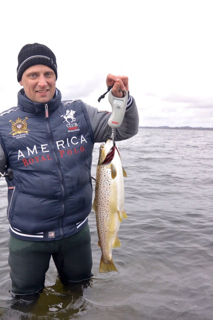 Vægten viste 2.8 kg fordelt på 60cm. Det gav en konditionsfaktor på 1,3. Det var en noget af en PR fisk til Rene. Stort tillykke med den flotte havørred. Jeg har aldrig set en så fed fjordørred i Isefjorden. De næste timer var der Bonanza fiskeri i modvinden og en anden deltager havde også fået en PR fisk på 1,8 kilo. Tillykke med den.