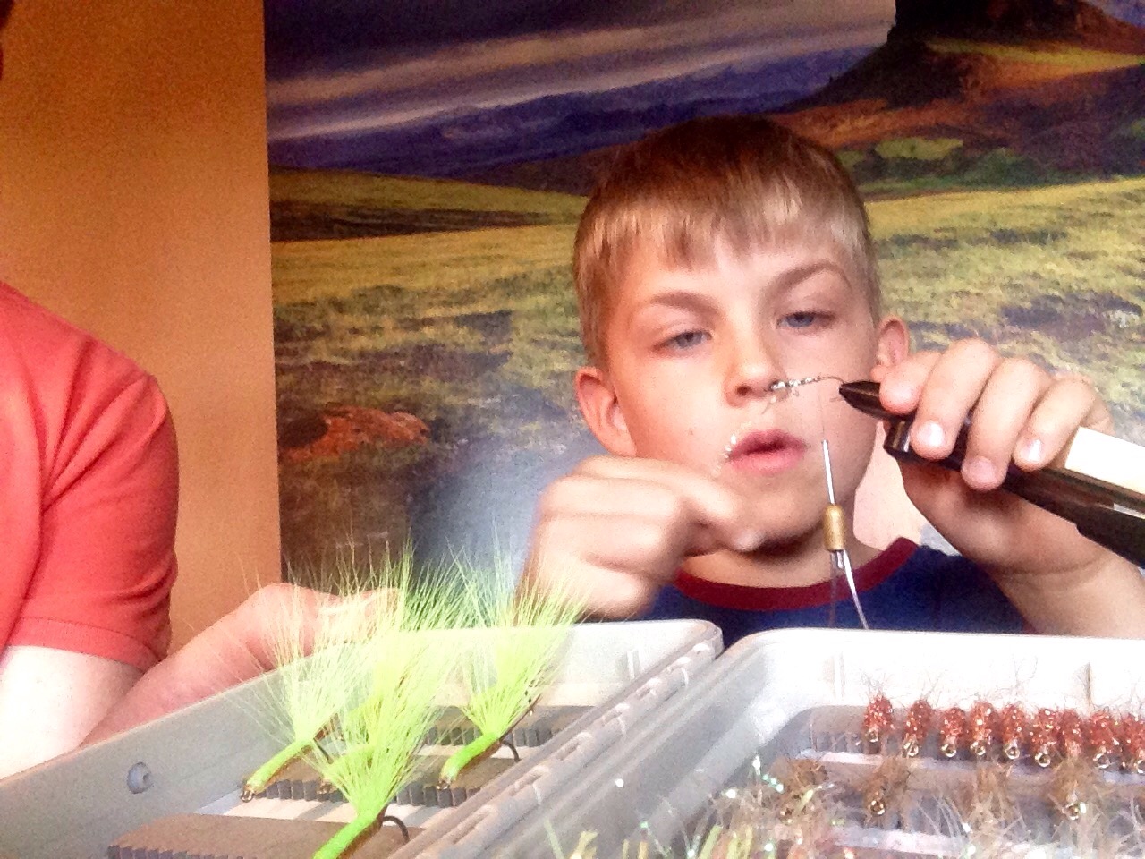 Rødbededagen blev brugt til fluebinding sammen med Emil. Det gik super godt han fil bundet 9 fluer i unik design. Det blev til High five da han selv kunne afslutte med whip finish (værktøj).