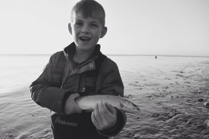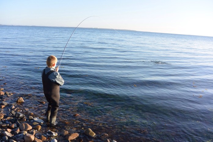 Ved 6 tiden var der havørreder på “bassen” og sønnike ville fighte fisken.