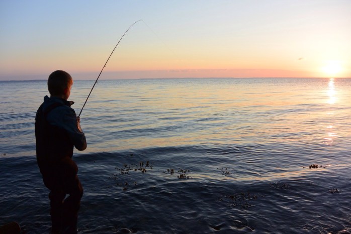 Næste morgen var vi landet på et hot-spot på vestsiden af Isefjorden lidt i fem om morgen. Emil (7 år) var fuld af energi og klar til fight med de blanke.