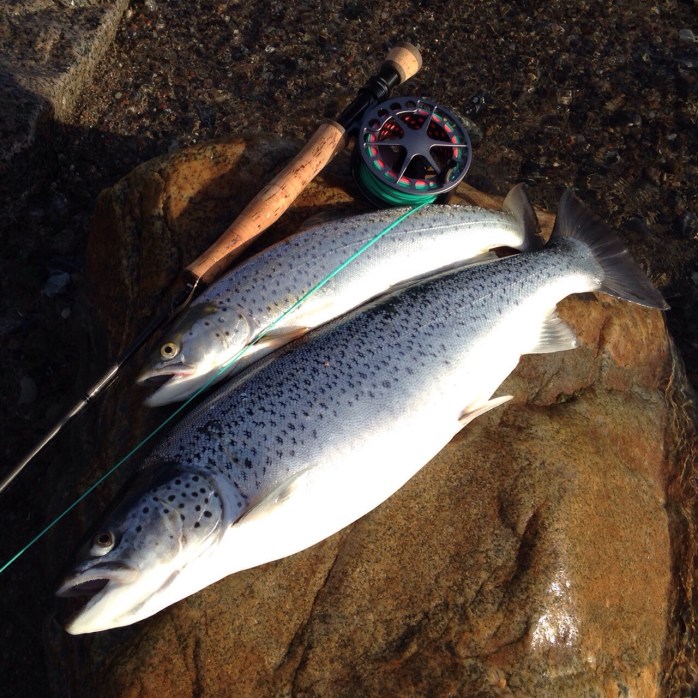 Har lige spist den hjembragte morgenmad fra den sidste fisketur for denne gang. Vildt fiskeri fra 4-6 igen. Fik 3 havørreder idag. Alle møgtykke. Den største på 55 cm og bomstærkt. Var lige et par meter fra at være i backingen 2 gange 🙂