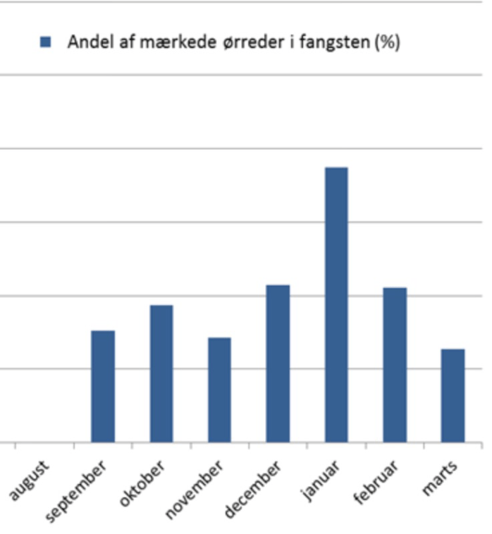 For at følge hvordan de udsatte ørreder indgår i fiskeriet, har DTU Aqua truffet aftale med et antal ”nøglefiskere”, der løbende indberetter deres fangster af både mærkede og umærkede ørred.