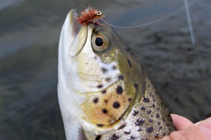 På “hjørnet” mødte jeg det lille lavvandet rev som ofte holder fisk. Det holdt stik. En mindre havørreder kunne ikke modstå min kobberbasse-flue.